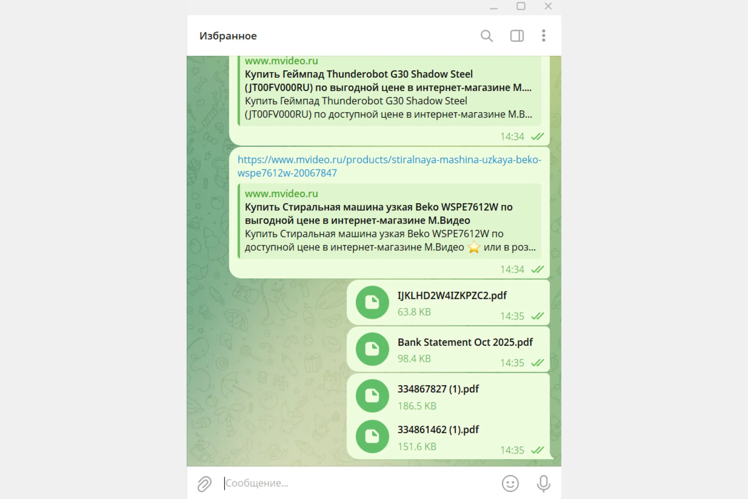 В «Избранное» можно загрузить файлы «весом» до 2 ГБ (до 4 ГБ на премиум-тарифе), скорость редко падает ниже 2-3 Мбит/с, а объем папки неограничен. После загрузки файлов они становятся доступны с любого из устройств, с которых выполнен вход в аккаунт. Это отличный сервис для кросс-платформенной передачи файлов — загружаете документ на компьютере и тут же получаете его на смартфоне, и наоборот. С последними обновлениями в «Телегу» добавили поиск и теги, так что получится легко найти файлы даже в «Избранном».