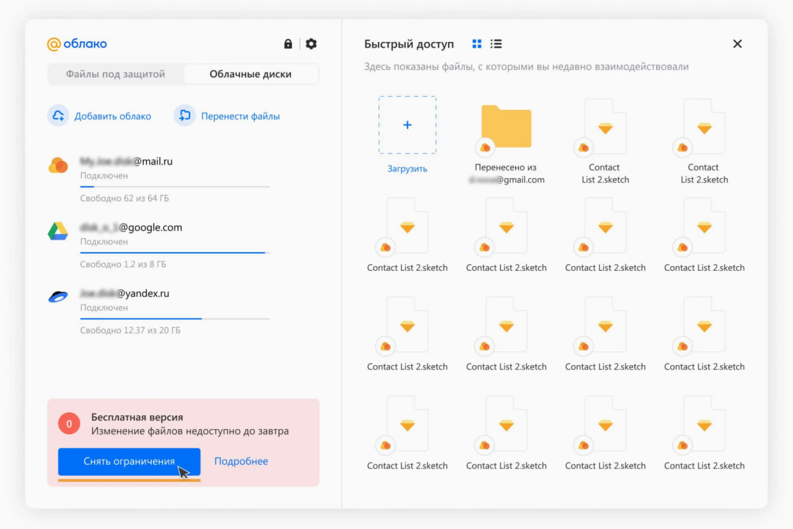 Облако доступно для всех основных платформ — Windows, macOS, Linux, iOS, Android. Для ПК есть веб-версия и расширение для браузера. Интерфейс приложения русифицирован. Пользователю доступны загрузка файлов, совместная работа, восстановление удаленных данных и поиск по названию. Можно делиться ссылками на загруженные материалы.